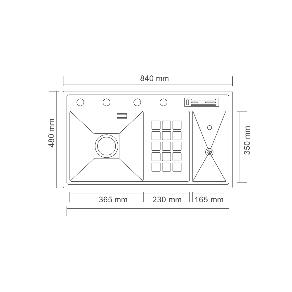 480*840 میلی متر سایز کلی سینک